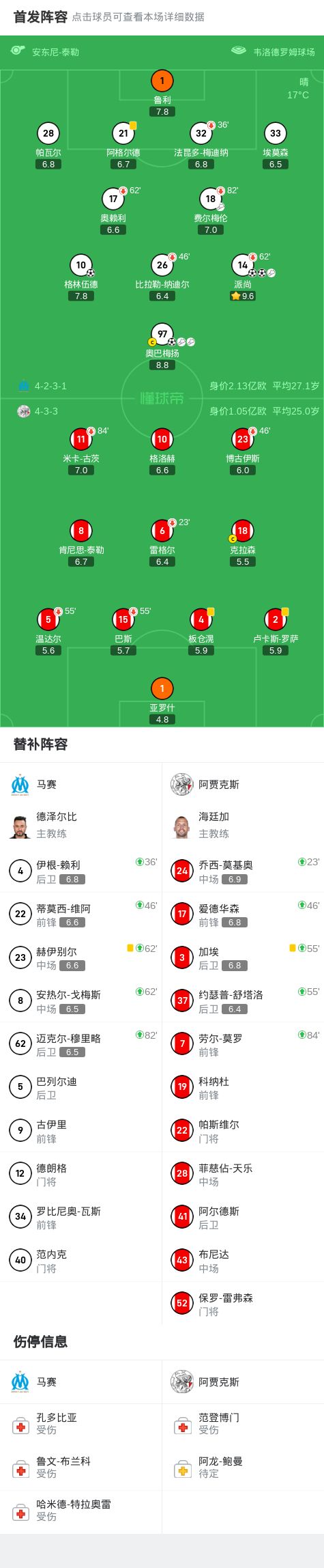 10月1日,北京时代,欧洲冠军联赛的第二阶段开始,马赛面对阿贾克斯。在比赛开始时,奥巴梅扬(Aubameyang)取得了准确的传球并获得了Paishan,并为球队打开了第一笔记。片刻之后,Fairmeron帮助Pakshan赢得了另一个进球,进一步扩大了他的领先优势。在第26分钟内,Aubameyang重新展示了他的进攻组织能力,帮助Greenwood推出了推球,Marseille带领三个进球结束了上半场。换了两侧后,帕尚(Paishan)在Aubameyang被枪杀并得分后获得了出色的传球,最高为4-0。最后,马赛以热情的成功完成了比赛。在惊人时刻的第六分钟,马斯的球员协助了帕尚·帕尚(Aubameyang Paishan)的aubameyang指出目标。在12分钟的时间里,马赛球员Fairmeron帮助Paishan得分。在第26分钟,马赛球员Aubameyang帮助进球了。在52分钟内,马赛球员Paishan帮助Aubameyang点了一下al。团队阵容技术统计